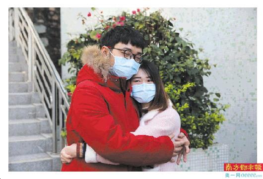 张露今年30岁,本来准备今年5月份结婚,准新娘是他的小师妹郭兰芳,两人都毕业于湖南中医药大学,现在一起在中山市人民医院内科ICU工作。2月18日早上,张露准备出征,郭兰芳一直紧紧陪在他身边。
