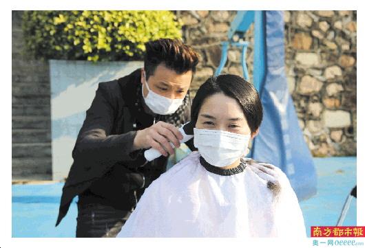 2月18日上午,9名队员从中山市人民医院出发前,一起在医院的篮球场剪发。值得一提的是,为了减少院感和做好自身防护,4位女医护人员也把头发剪短。“留了十几年长发,第一次剪这么短,还是有些心疼”,主管护师阳晓娟说,随后她又笑道,“但是没关系,保护好自己最重要。头发,还可以长回来”。剪完后,来不及洗头发,身边同事就用透明胶沾下贴在队员身上、衣服上的碎发。