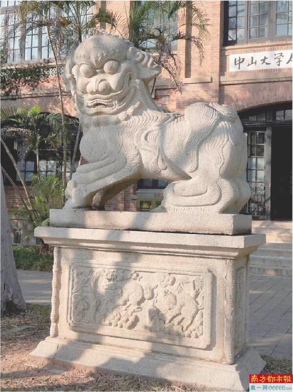 “在岭南大学博物馆众多藏品中,在我看来,石狮们最有故事。”姚明基还指着在马丁堂正门的石狮对南都记者说,这是钟荣光校长于20世纪20年代从广州一座被拆除的庙宇中找来的典型的南派石狮。“这是一只雌性狮子,它脚踩一头小狮子,口含飘带,生动灵巧,圆雕、浮雕、线刻等技法突出。更为精彩的是,在马丁堂大门里面,展陈着征集而来的,由参加公车上书、推动戊戌变法的主角康有为先生,在变法失败后游走欧洲多国时购买的13件套的狮子、女神石雕。门内的一对石狮,毛发浓密卷曲,雕刻细腻逼真,体形与现实相近。”
