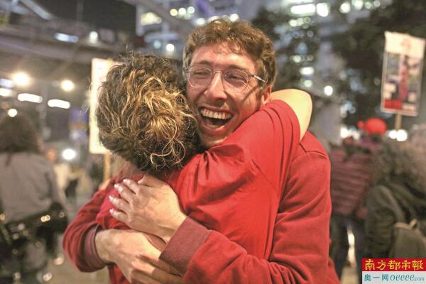加沙地带民众和以色列人质家属纷纷走上街头庆祝欢呼