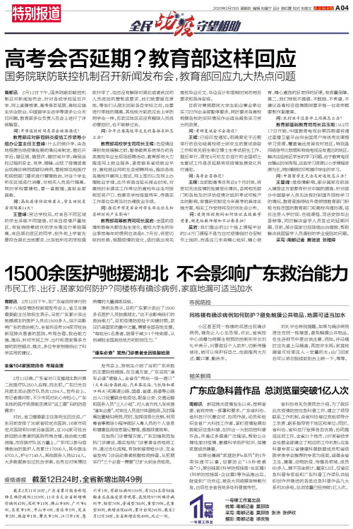 南都讯 2月12日下午,国务院联防联控机制召开新闻发布会,针对各级学校延迟开学、网上直播授课、高考是否延期、高校应届生毕业就业、中国留学生返学等诸多公众关切问题,教育部多位负责人在会上进行了详细解答。