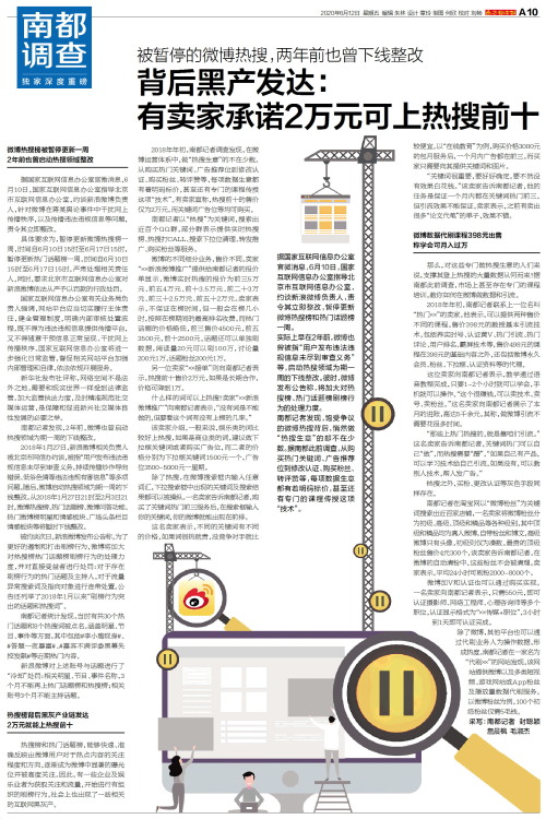 背后黑产发达:有卖家承诺2万元可上热搜前十