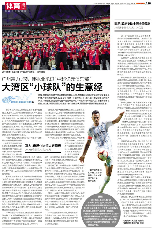 本周,南都系列报道关注中超联赛的商业价值。前两期我们阐述了中超联赛采用集体招商、平均分红的模式,以及在“自留地”不多的情况下,京沪豪门国安和申花的收入状况,本期我们关注另外两座一线城市的球队广州富力和