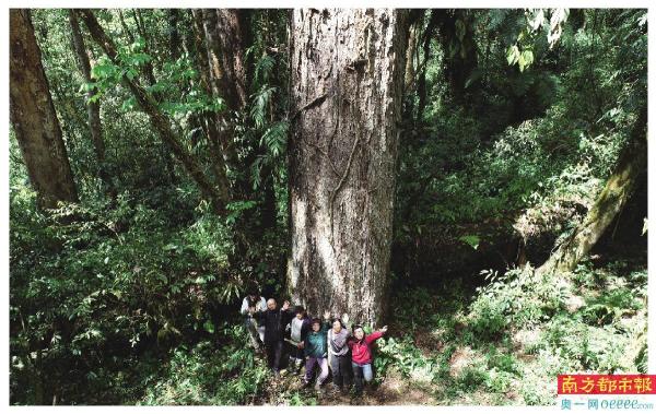 ←研究队的工作人员和巨树合影。