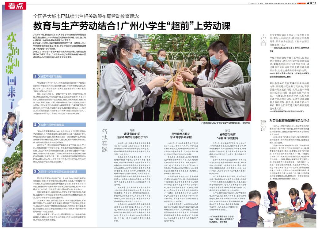 教育与生产劳动结合!广州小学生“超前”上劳动课