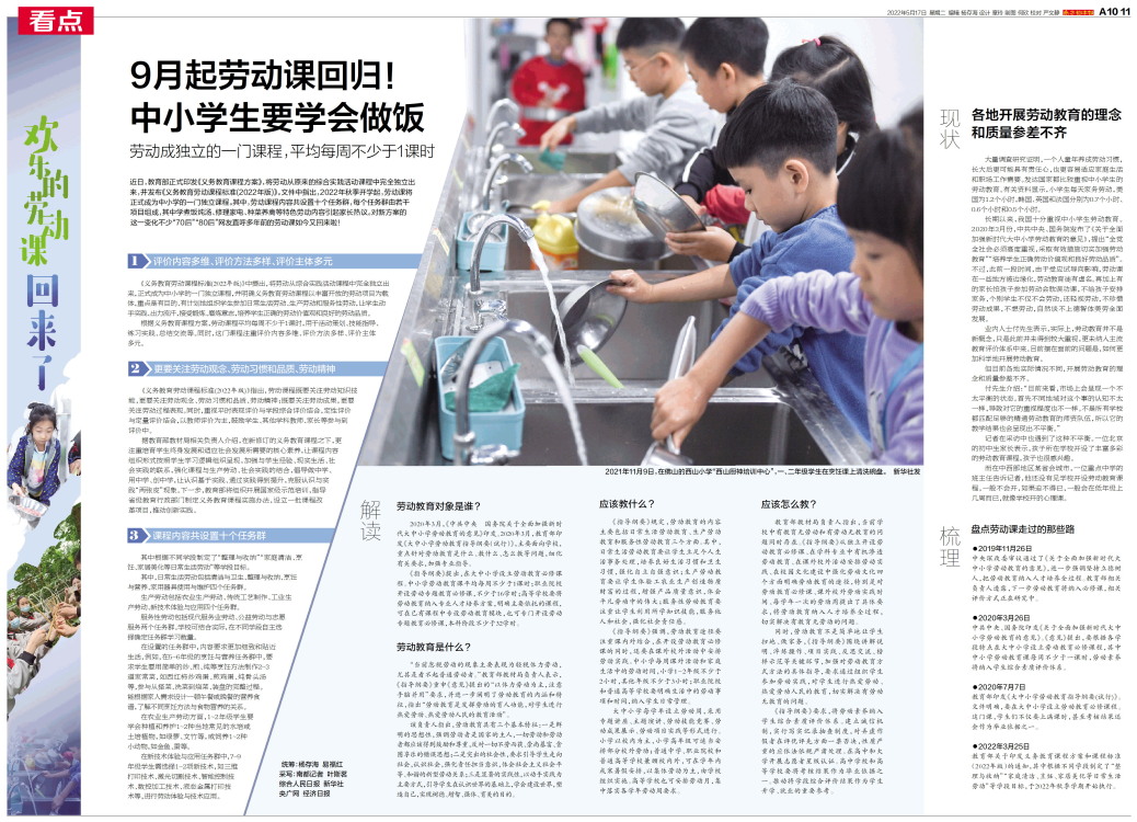 9月起劳动课回归!中小学生要学会做饭