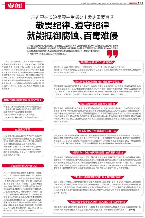 中共中央政治局于12月26日至27日召开民主生活会。