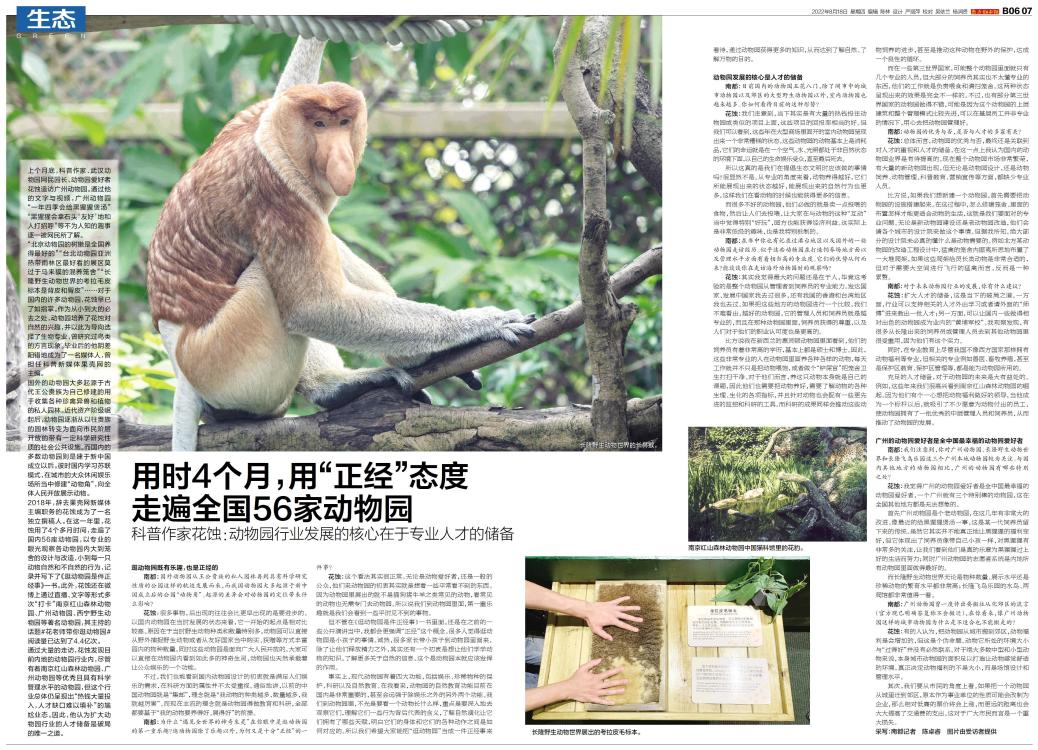 上个月底,科普作家、武汉动物园网民园长、动物园爱好者花蚀造访广州动物园。通过他的文字与视频,广州动物园“一年四季会给黑猩猩煲汤”“黑猩猩会拿石头‘友好’地和人打招呼”等不为人知的趣事逐一被网民所了