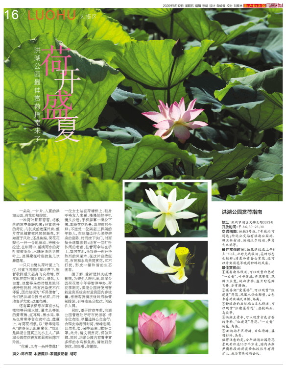 一朵朵,一片片,入夏的洪湖公园,荷花如期绽放。一池荷叶郁郁葱葱,将散落的凉亭串联起来;径直盛开的荷花,与长成的莲蓬并肩;整片荷池随着微风轻轻摇曳,不知源于风吹,还是鱼摇,荷花花瓣也一开一合地律动。将镜