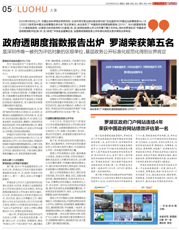 政府透明度指数报告出炉 罗湖荣获第五名