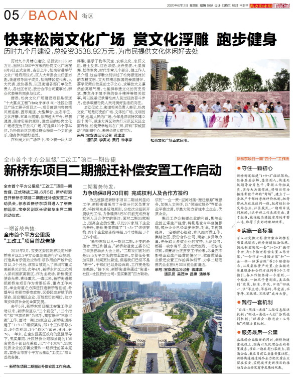 全市首个平方公里级“工改工”项目一期告捷,正式转战二期。6月5日,新桥街道召开新桥东项目二期搬迁补偿安置工作动员会,标志着新桥东项目进入了崭新的篇章。宝安区副区长梁敏华出席二期启动仪式。 一期首战告