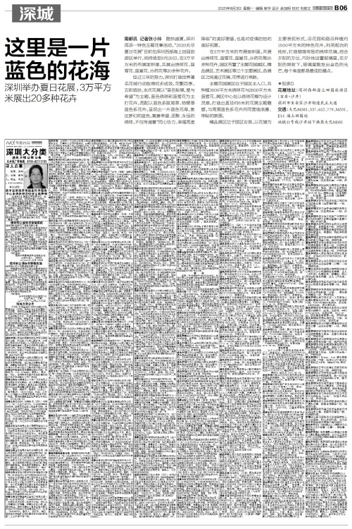 南都讯 记者张小玲 酷热盛夏,深圳再添一特色主题花事活动,“2020无尽夏日花展”目前在深圳西部海上田园旅游区举行,将持续至9月20日。在3万平方米的布展面积里,共展出绣球花、蓝雪花、蓝星花、分药花等