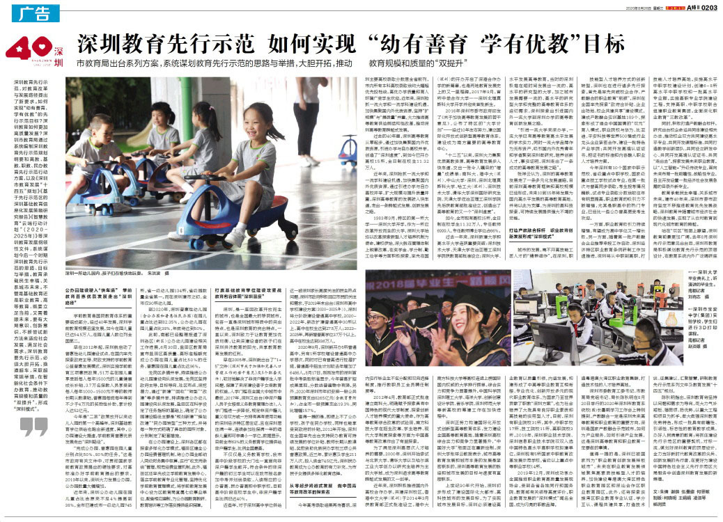 深圳教育先行示范,对教育改革与发展路径提出了新要求。如何实现“幼有善育、学有优教”的先行示范目标?深圳教育如何更加高质量发展?深圳市教育局通过系统编制深圳教育先行示范规划纲要和高教、基教、职教、民办教