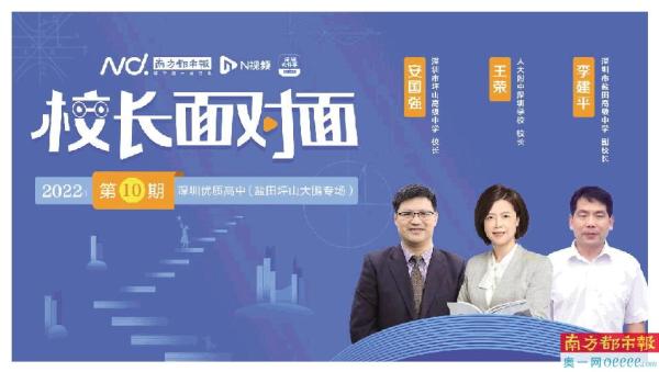 5月17日19:30,南方都市报“校长面对面”直播第十期,坪山区、大鹏新区、盐田区三位专家型、实干型校长一起走进直播间,探讨:如何打造区域标杆学校,发出深圳东部教育强音?三位校长在建设学校品牌和提升办学成绩上有哪些实招,学校下一步还要实现哪些新突破?让我们拭目以待。