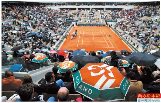 2019年6月8日,男单半决赛因雨中断。今年法网受疫情影响延期到9月。 新华社发