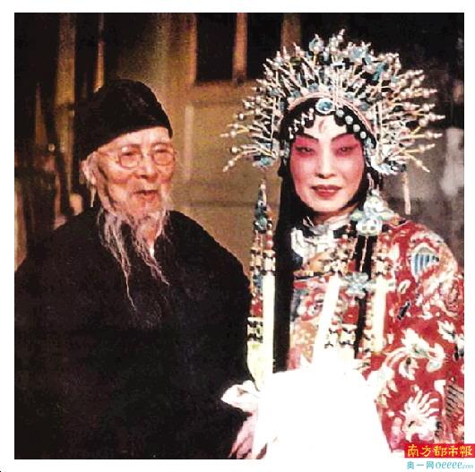 齐白石和梅兰芳(戏妆)合影。