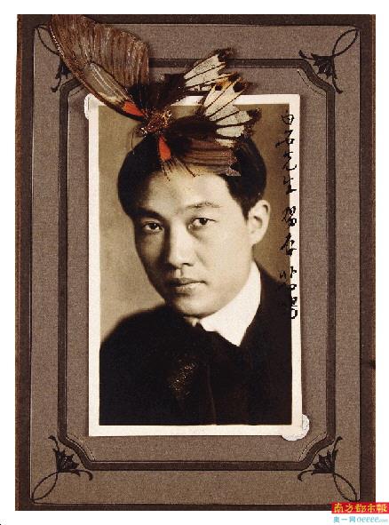 徐悲鸿赠齐白石的个人照,题记“白石先生留存,悲鸿”。