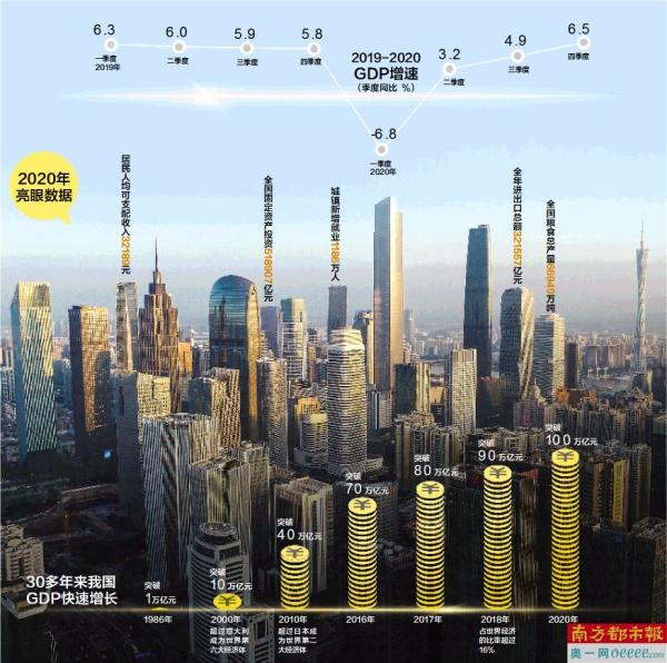 我国经济总量首次突破100万亿