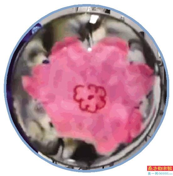 3. 水膜张力实验中,航天员王亚平之前和女儿一起制作的折叠纸花在太空中“绽开”。