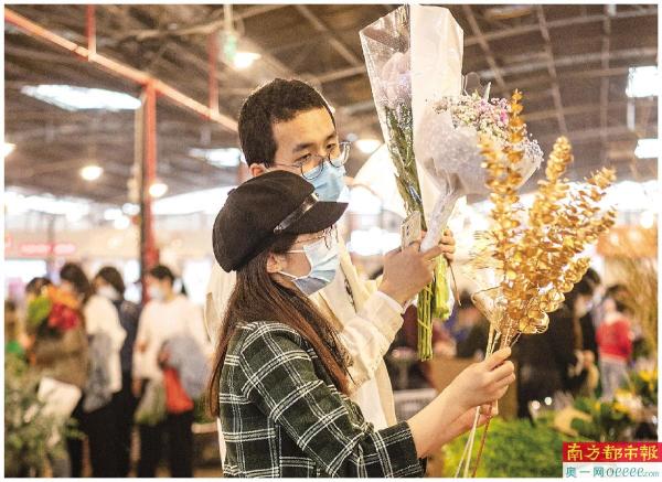 近日,在广州岭南花卉市场,市民挑选年宵花。 南都拍客 徐瑶 摄