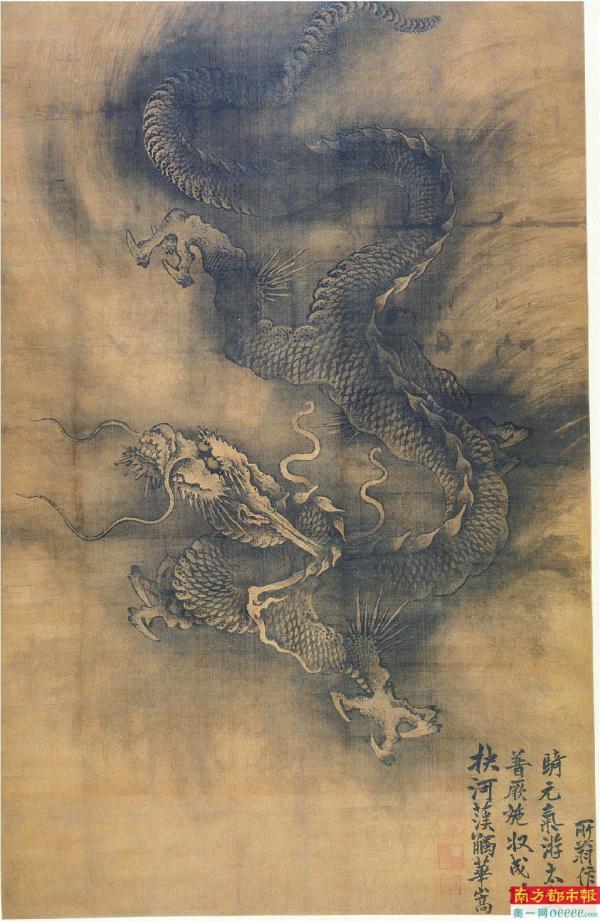 作为中国人的民族图腾,龙是否真实存在过,学界对此莫衷一是。但古代文献中对龙的记载从未间断。从战国到清代,从最开始简单的“马首蛇尾”,到五代、北宋的“角似鹿,头似牛,眼似虾、嘴似驴、腹似蛇、鳞似鱼”,龙的形象在不断地具化。历代画龙高手中,有三国的曹不兴、东晋的顾恺之、南朝的张僧繇。而流传下来成画较早的一幅就是宋代陈容的《墨龙图》。