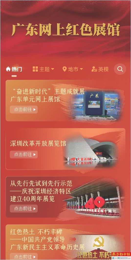 广东网上红色展馆、网上红色地图、“奋进新时代”主题成就展广东单元网上展馆。 网络截图