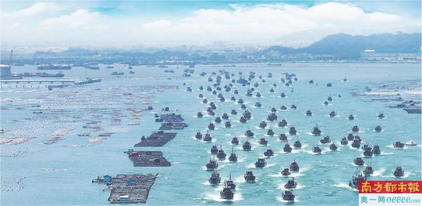 8月16日中午12点,饶平县200多艘渔船拔锚启航,驶向大海深处。 南都拍客 马卡 摄