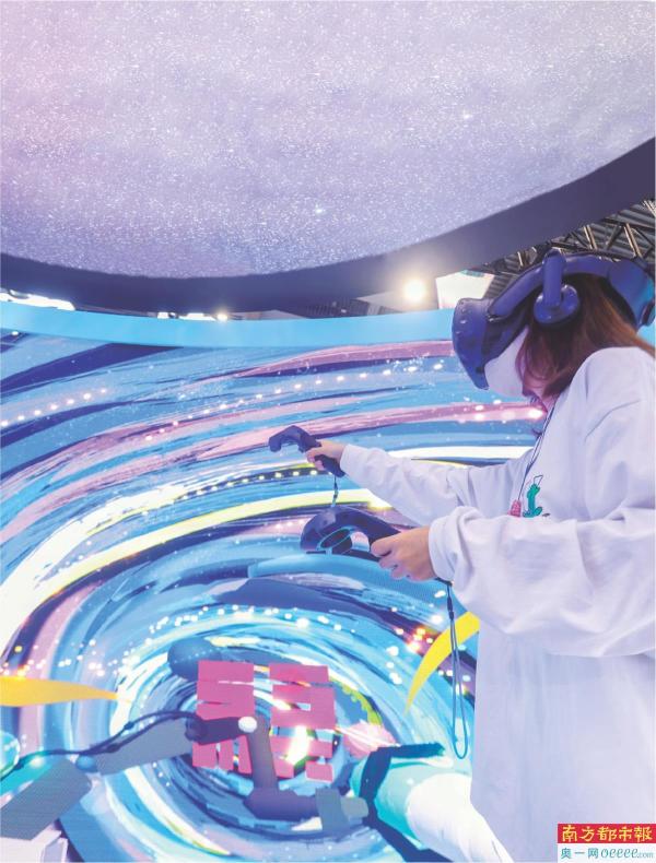 第24届中国国际高新技术成果交易会(高交会)现场观众体验VR线上绘画。今年第25届高交会首创数字人直播形式,并依托抖音等自媒体平台多角度宣传高交会相关内容。 南方日报记者 朱洪波 摄