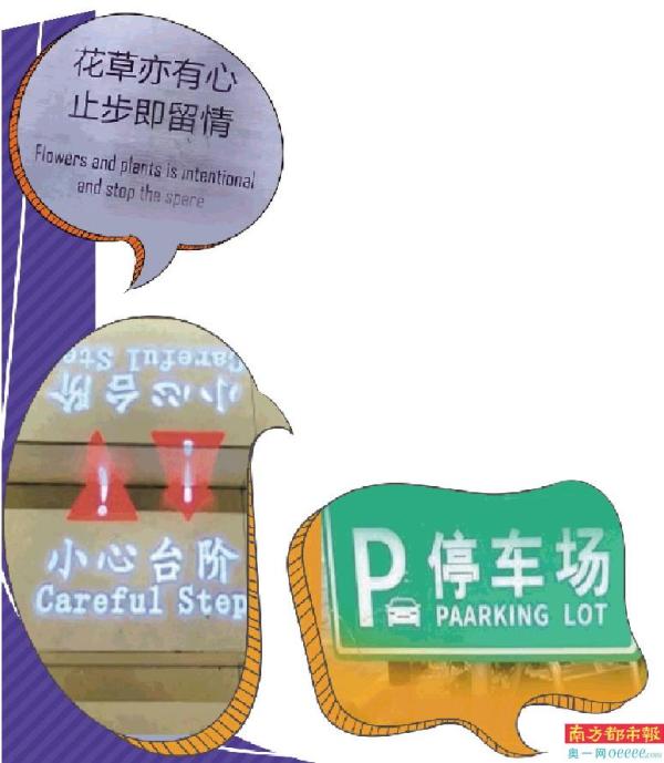 广州公共场所的一些英文标识出错。图片来源:广州市规划院微信公众号、网络图片