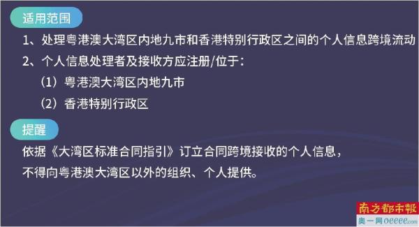 2023年6月29日,国家互联网信息办公室与香港特区政府创新科技及工业局签署《关于促进粤港澳大湾区数据跨境流动的合作备忘录》,在国家数据跨境安全管理制度框架下,建立粤港澳大湾区数据跨境流动安全规则;同年12月13日《大湾区标准合同指引》对外发布,通过简化流程和降低合规成本,推动跨境贸易和服务。其中明确,注册在粤港澳大湾区内地九市的个人信息处理者及接收方,如不涉及被告知或公布为重要数据的个人信息,可以通过订立标准合同的方式,进行粤港澳大湾区内地和香港之间的个人信息跨境流动。