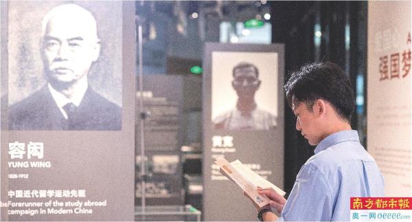 珠海博物馆“留学少年郎”展区,张自豪翻阅《容闳自传》。
