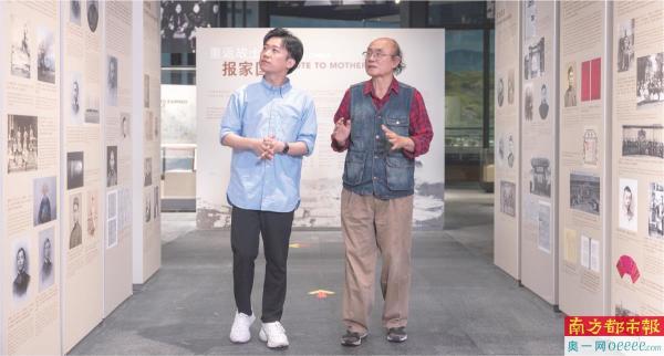 雷颐(右)与张自豪在珠海博物馆“留学少年郎”展区参观。