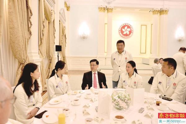 8月21日中午,香港特区行政长官李家超在其官邸——礼宾府——设午宴宴请中国香港奥运代表团,表扬运动员和代表团成员在本届奥运会上取得的成就。