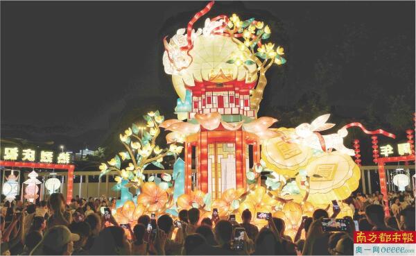 南都记者了解到,从1956年开始,广州文化公园中秋灯会已举办了60多年。今年灯会免费展出32组大中型灯组和近2000盏气氛灯。本届灯会布局主要分为传统和现代两个分区,其中“古韵耀湾区”部分主要集中在正门广场和中心广场,“艺脉传新韵”区域主要集中在西南广场。今年中秋灯会一如既往延续精巧秀丽、气势壮观、灯景交融等特点,且在规模数量、技术创新、外形表现等方面均有突破。