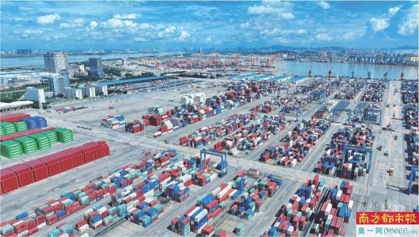 广州港南沙港区一片忙碌。