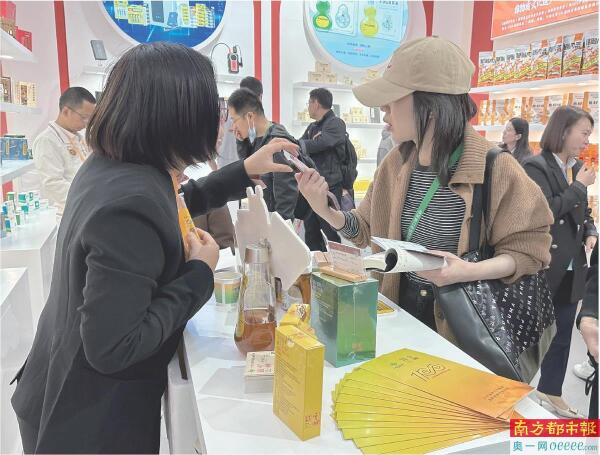 观众在宝生园展位盖章打卡、了解“岭南好蜜”。南都记者 赵唯佳 摄