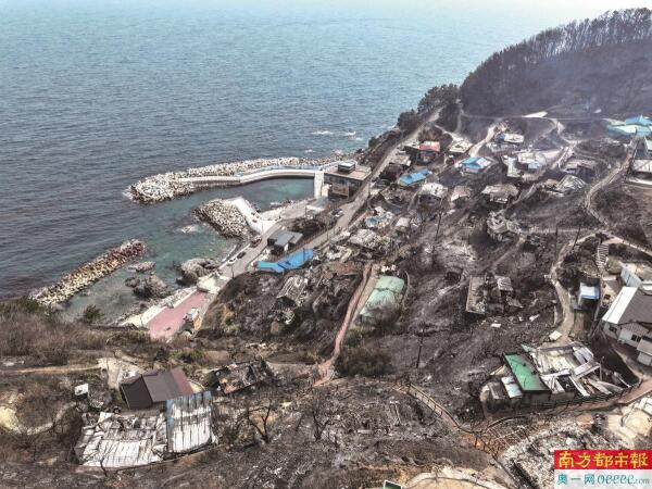 韩国盈德郡被山火烧毁的房屋。 新华社发