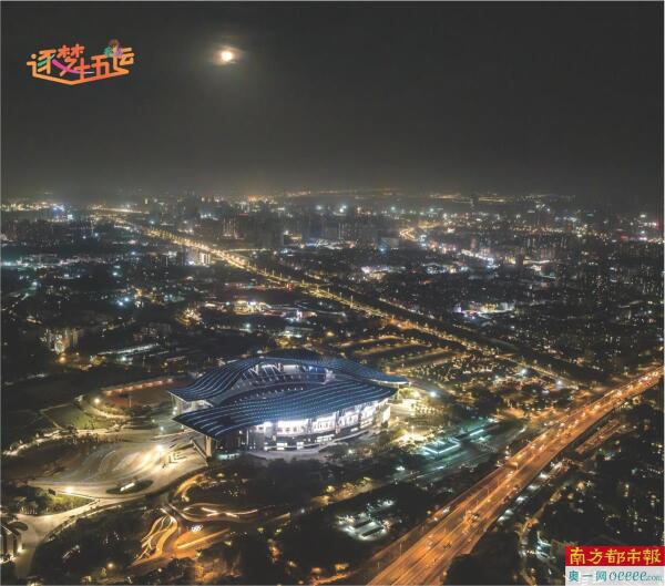 4月16日夜,广州黄村奥体中心体育场灯光测试。据悉,6月底该场馆将完成竣工验收。 南都、N视频记者 徐杰 摄