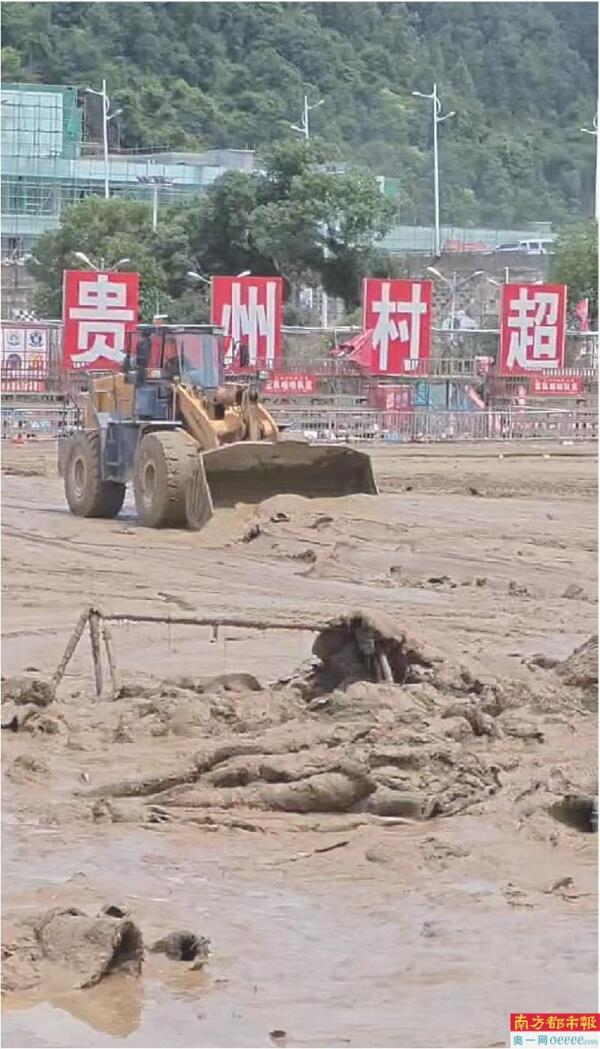 此前贵州榕江县洪水漫过村超球场,引起关注。榕江县文体广电旅游局相关工作人员告诉南都记者,“洪水已退,村超球场有很多淤泥,我们正在清淤,清淤后尽力在一两周内恢复球场”,他还表示,“大概比赛和节目会往后延一两周”。