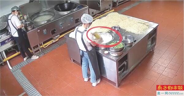 涉事幼儿园后厨非法添加彩绘颜料监控画面。 央视截图