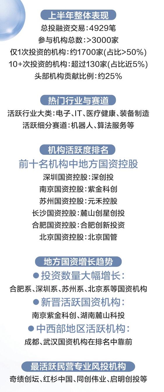 上半年科创投资活跃度 地方国资创投机构领跑