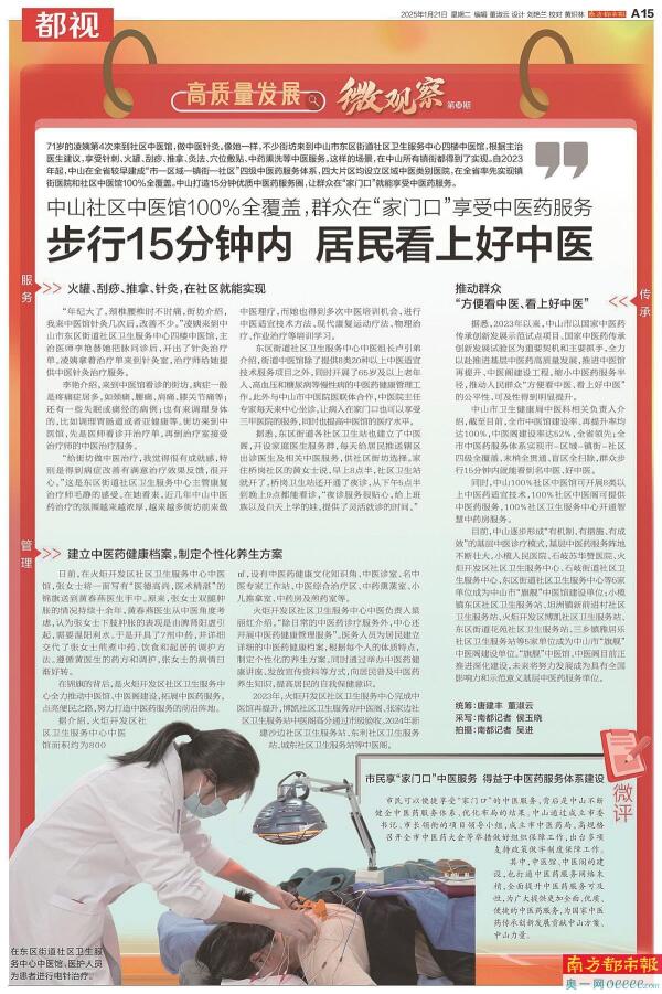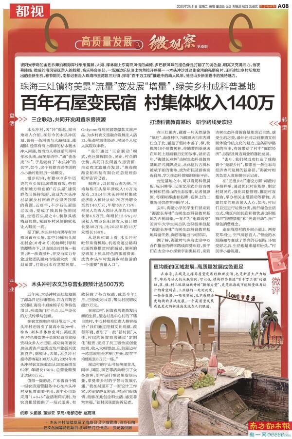 把视角聚焦到“百千万工程”第一线。中山南朗街道的崖口村将农业、文化和旅游三大元素结合起来,打造了多个“爆款”文旅项目。仅半年村集体经济收入就达近2000万元,同比增长约20%。《面朝稻浪饮咖啡 舞狮巡游看飘色》解读了这个网红村的致富密码。此外,老旧小区的旧改之路,老百姓“家门口”的中医馆……一系列民心工程都成为“微观察”的生动样本,也是市民感知政策力度、感受城市温度的窗口。