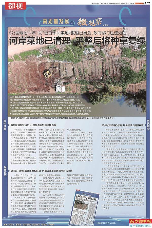 南都《高质量发展·微观察》专栏推出以来,截至2025年9月2日,稿件已刊发100期,绝大部分市民反映的民生诉求已得到切实解决或部门回应,地方高质量发展的多个先进典型案例“被看见”。为更好地助力高质量发展,专栏聚焦人民群众“急难愁盼”问题,以“微观察”的小切口,反映阻碍高质量发展的堵点、卡点,展示高质量发展的优秀案例和创新模式,补齐民生短板,破解民生难题,兜牢民生底线。
