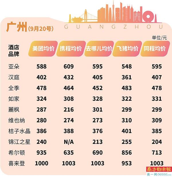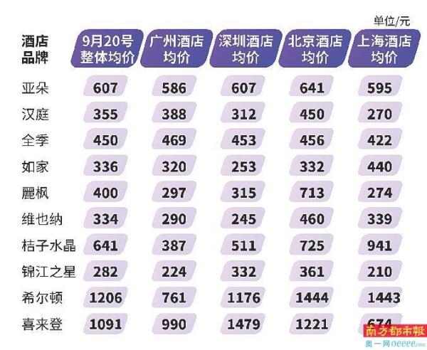 南都推出“酒店价格指数”聚焦北上广深十大商务酒店品牌价格,为消费者假期提供更具性价比的选择