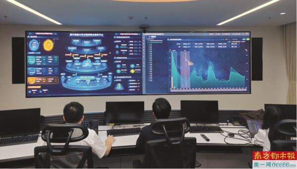 工作人员正在利用粤能投虚拟电厂平台监控车网互动情况。 吕安妮 摄