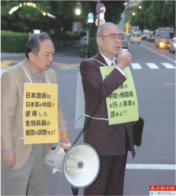 4. 土屋公献(右)在东京街头向日本民众宣讲细菌战。 本版为受访者供图