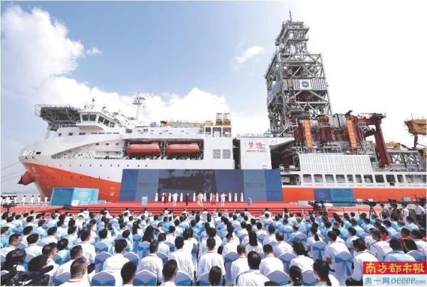 “梦想”号大洋钻探船:拥有全球首台兼具油气钻探和岩芯钻取功能的液压举升钻机,具备全球领先的1.1万米深海钻探能力,是我国打造深海进入、深海探测、深海开发能力的战略支撑。