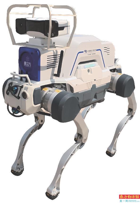 “氢立方”具身智能电力巡检机器人班组中的四足机器人。