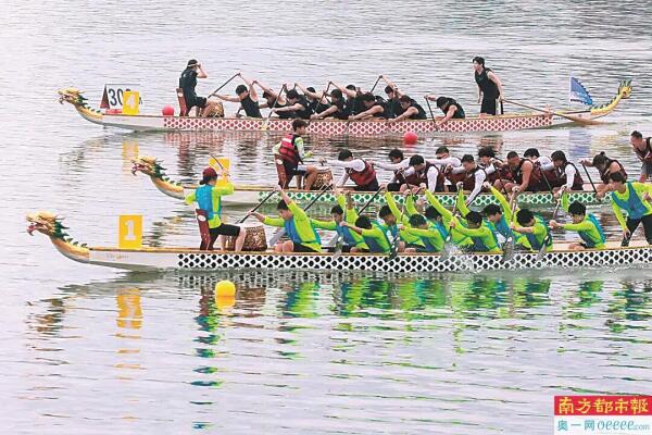 与此同时,为迎接十五运会,10月12日,佛山大学仙溪校区校园里,也开展了一场龙舟比赛。在仙溪湖的碧波之上,鼓声震天,参赛队员们身着不同颜色的赛服,全力划桨,驱动龙舟快速前进。