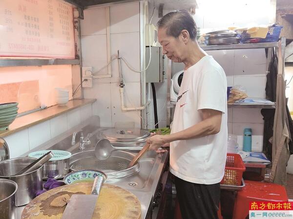熬牛骨汤、煮卤水、洗牛杂、焯水……每一个步骤都由何伯完成。一位常客告诉南都记者,从这家店开张起,隔三差五就会来光顾。“何伯做的面和其他的店不一样,能吃出食材原本的醇香。我女儿从小就在这里吃,现在她都七岁了。”